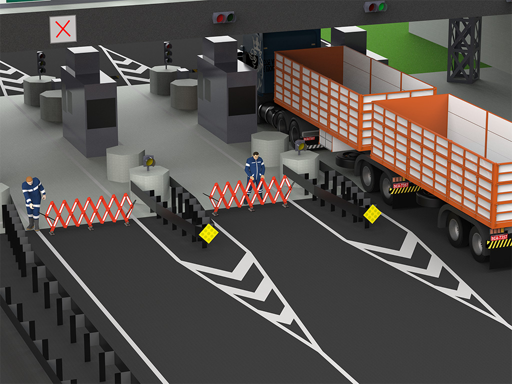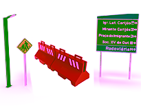 Placas e barreiras para sinalização e organização urbana.