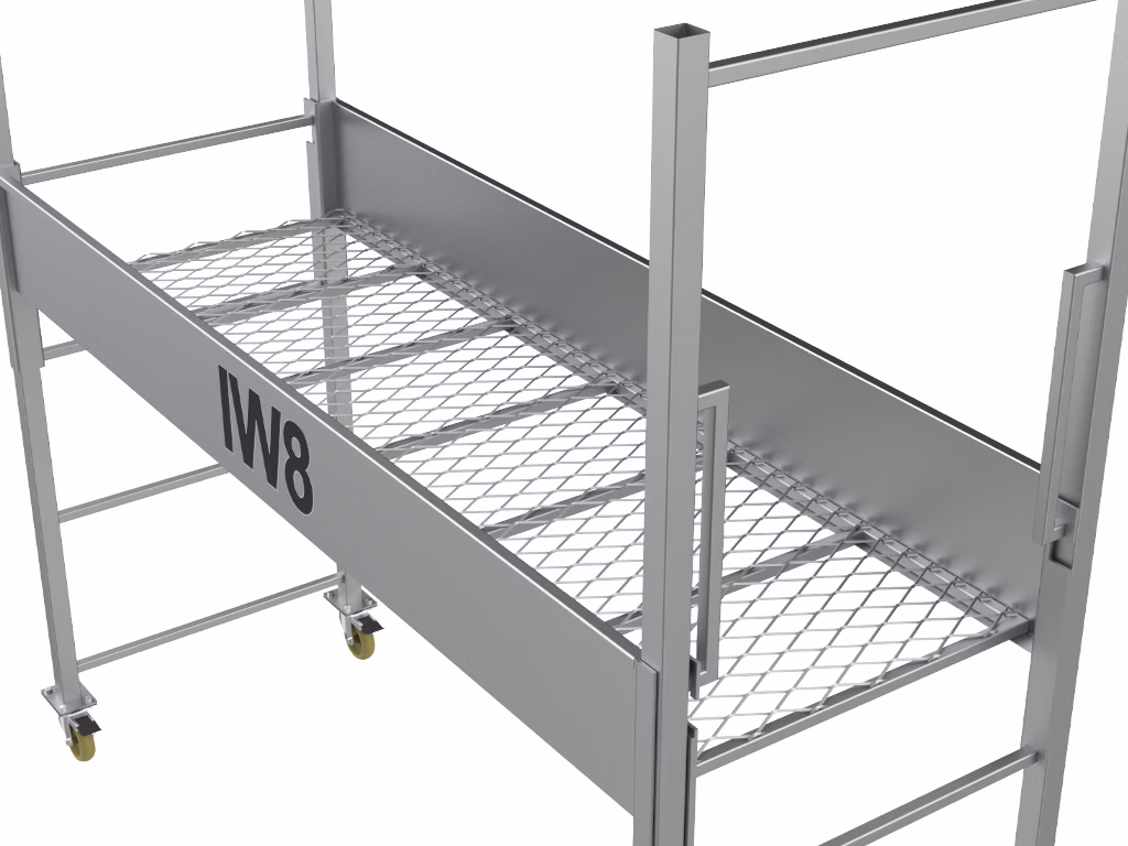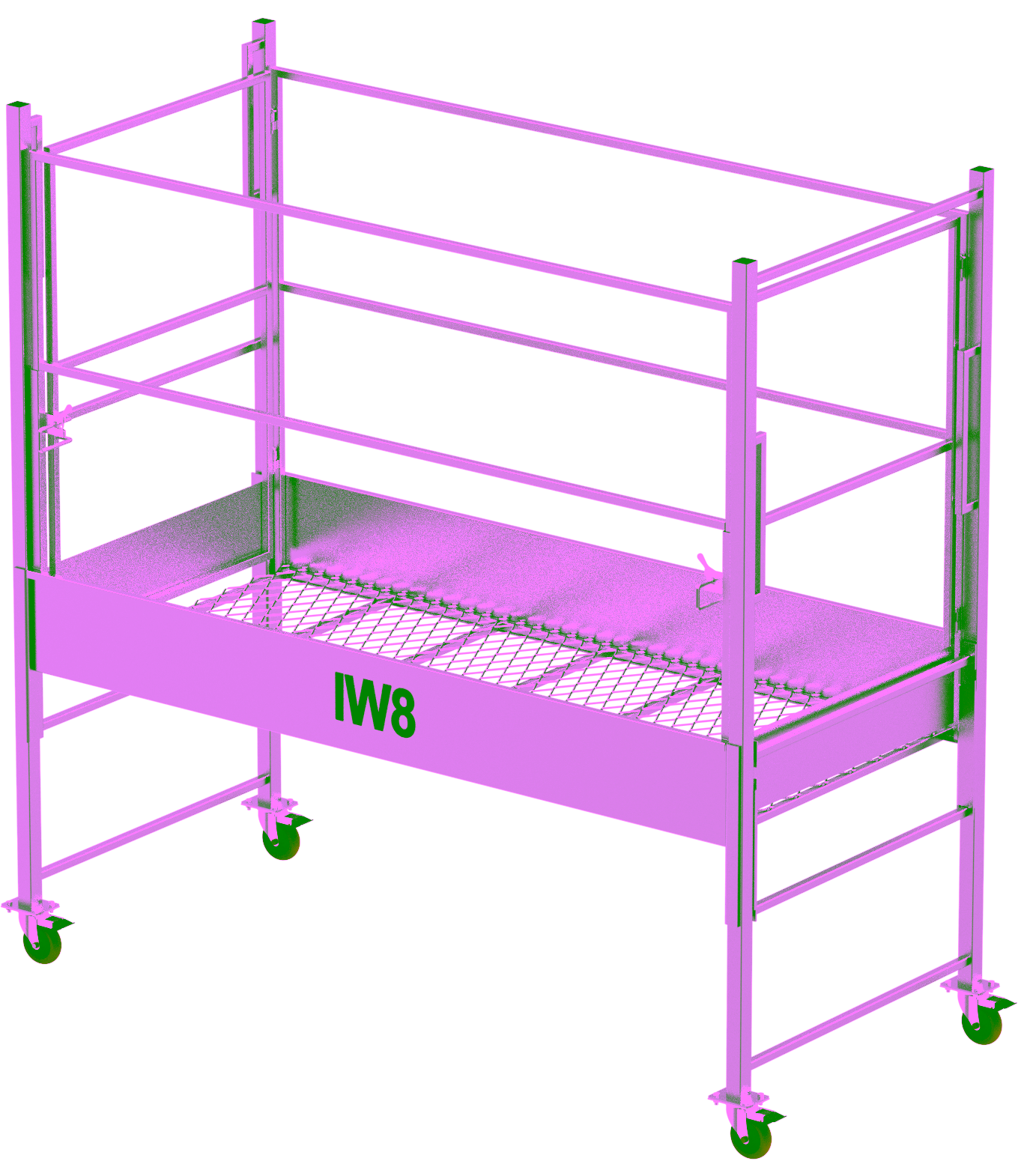 Andaime pequeno e leve, porém robusto. Regulável em altura, desmontável e de montagem rápida. Plataforma para andaime com aderência, rodízio com freio, guarda-corpo e escada. Atende NBR 6494, NR-12, NR-18, NR-35. Ideal como andaime pintor, andaime eletricista e andaimes para interiores. Documentação (ART, memorial de cálculo, manual PDF/DWG) e projeto customizável.
