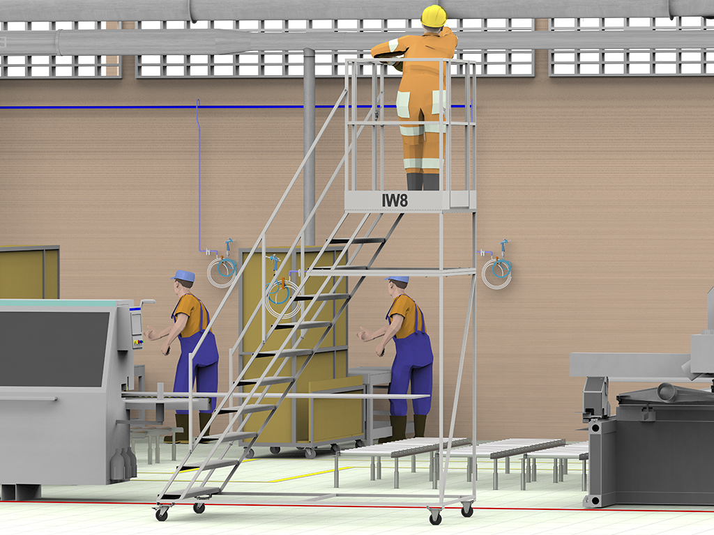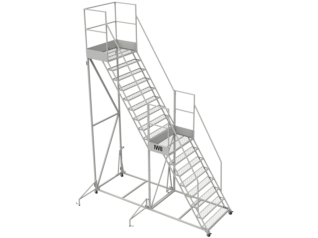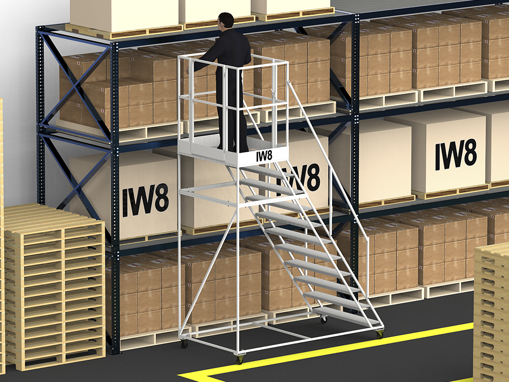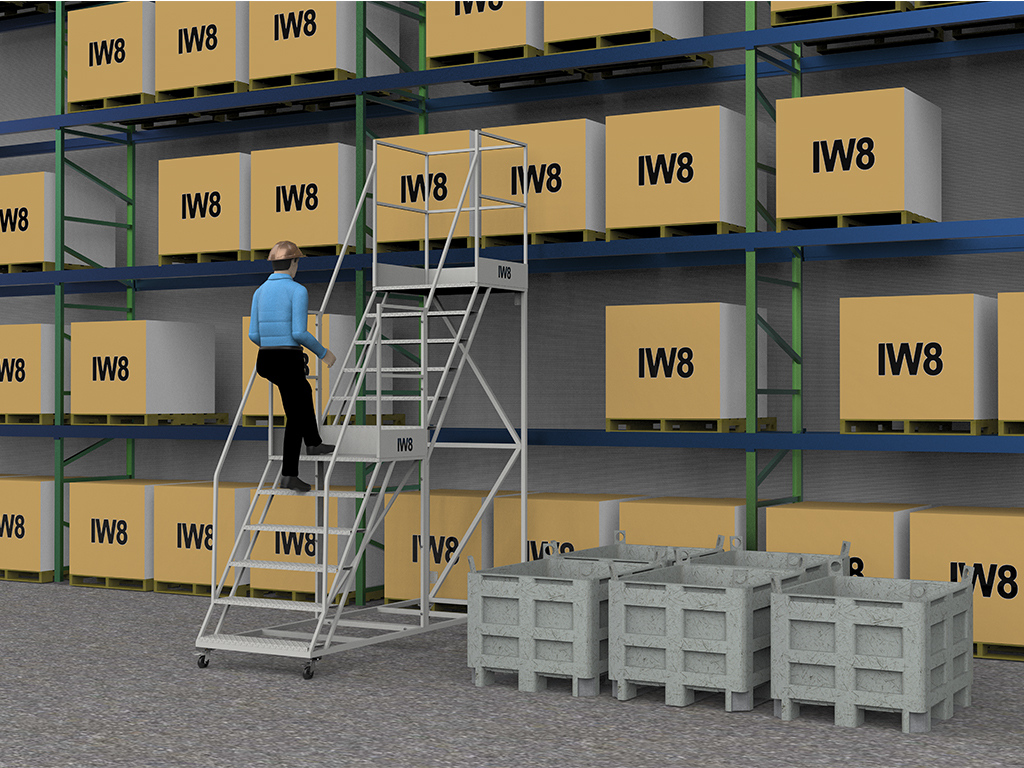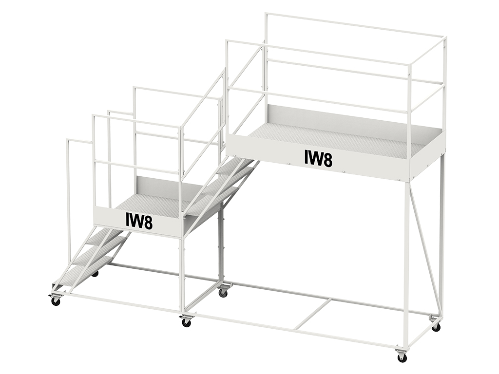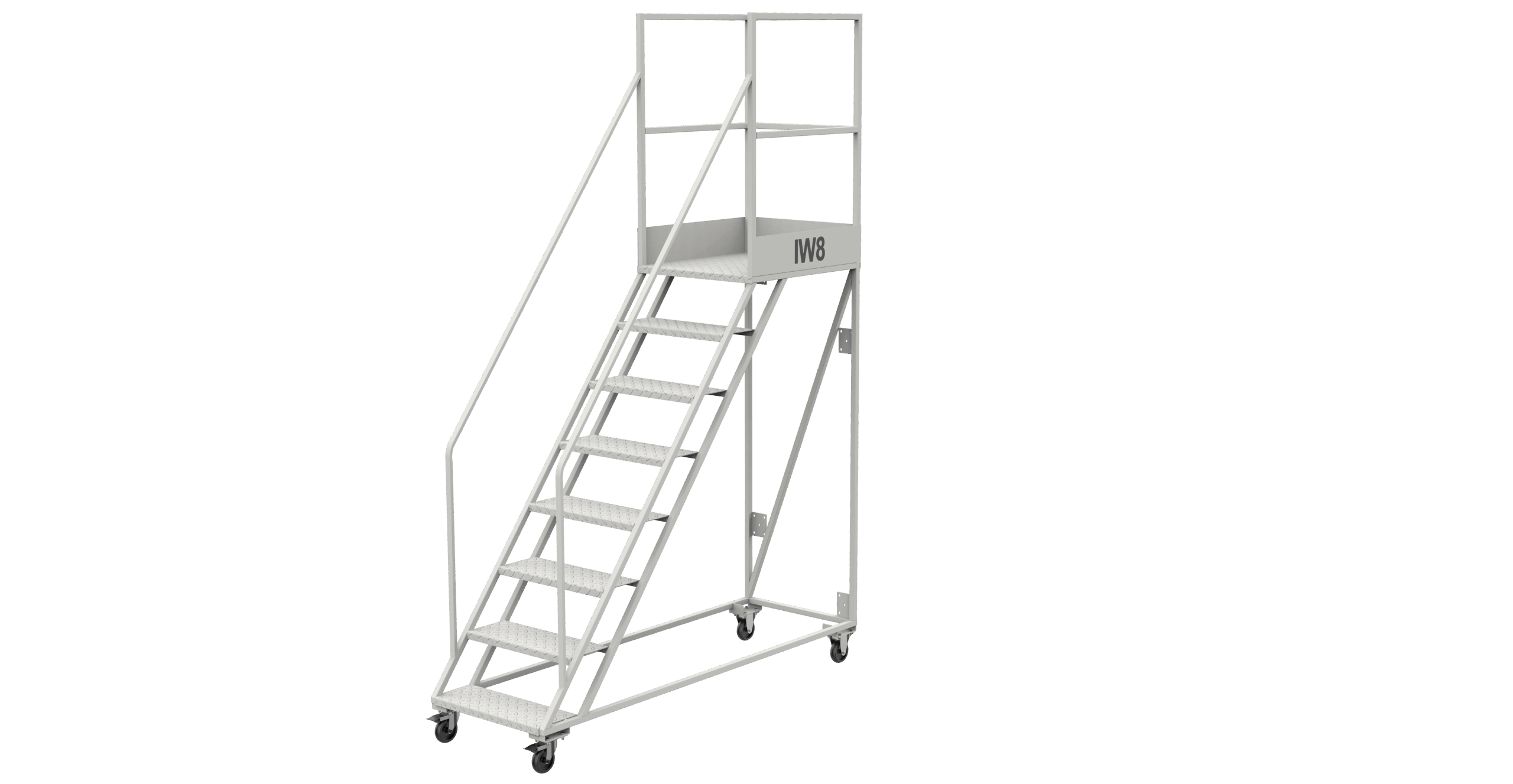 A Escada Plataforma industrial da IW8 Construmaq é fabricada em aço reforçado com rodízios, guarda corpo e patamar de segurança, atendendo às normas NR-12, NR-18, NR-35 e ABNT NBR 16308. Indicada para obras de construção civil, almoxarifados, depósitos, centrais de logística e indústrias, substitui o andaime fixo e garante acesso seguro a áreas elevadas. Disponível em diferentes medidas, com degraus variados e opção de projeto sob medida.
