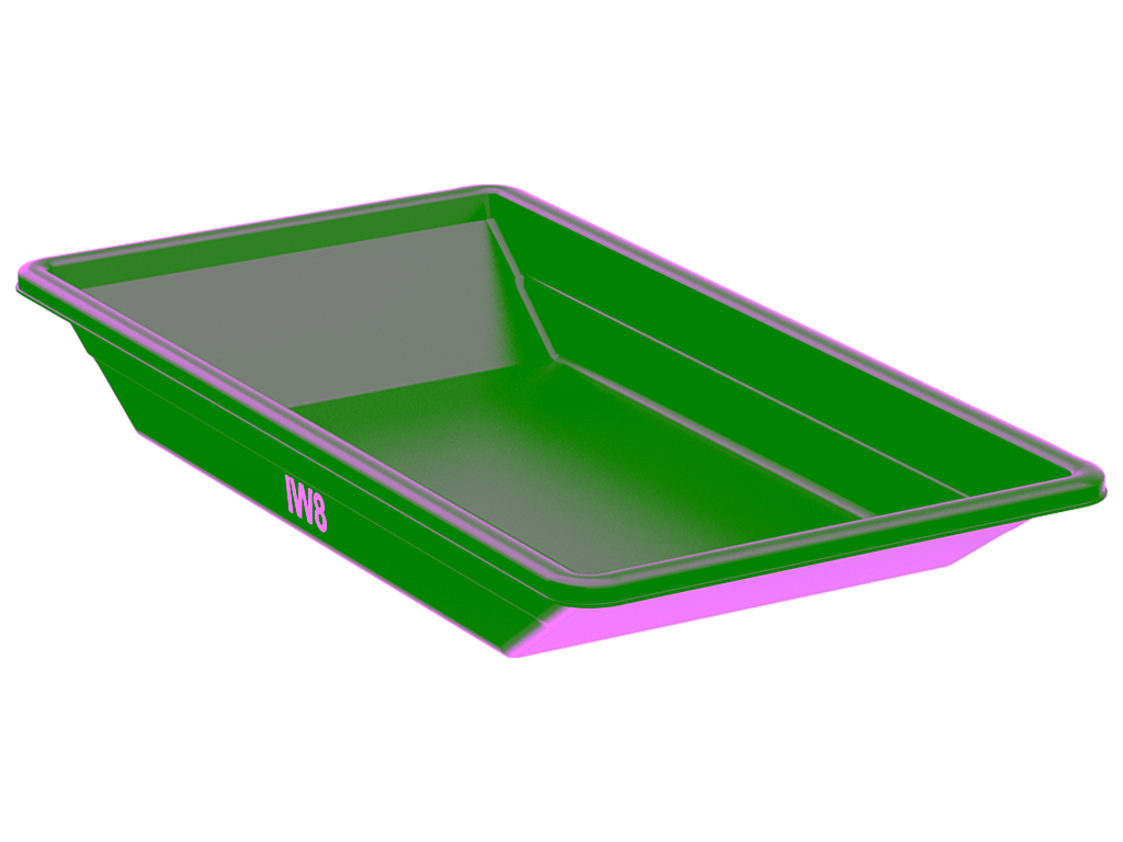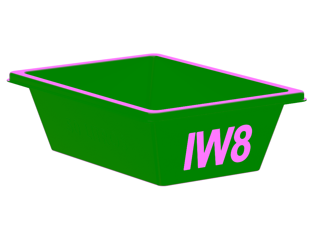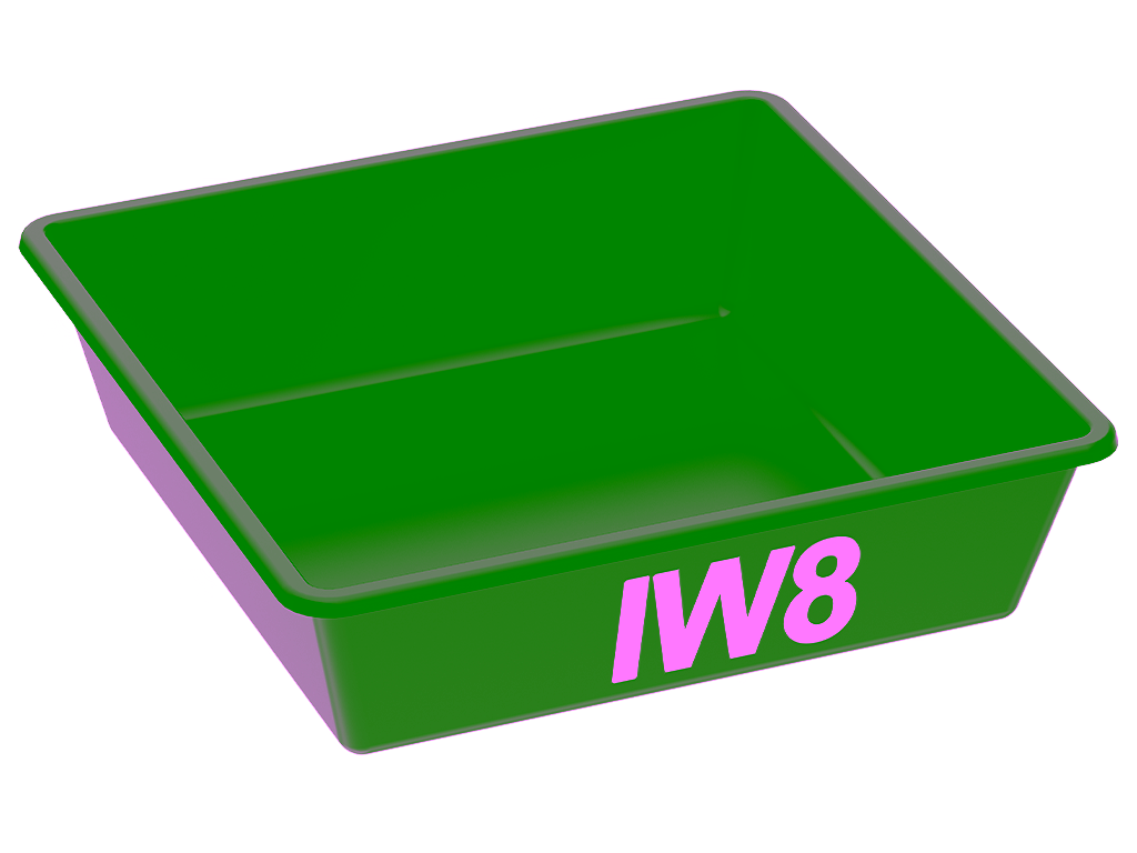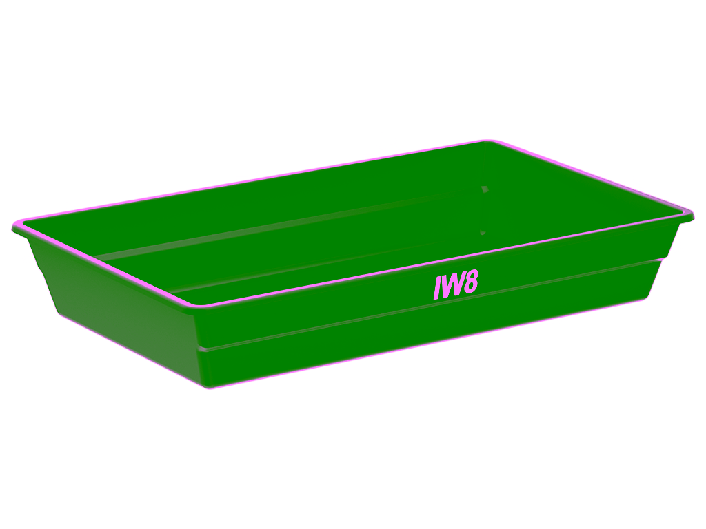 As Bandejas de Contenção IW8 são produzidas em polietileno rotomoldado de média ou alta densidade, com capacidade de 20 a 1000 litros. Possuem estrutura reforçada, bordas ergonômicas e base plana. Atendem às normas NR-12, NR-18 e NR-26 sobre segurança, armazenamento e sinalização de produtos químicos e inflamáveis.