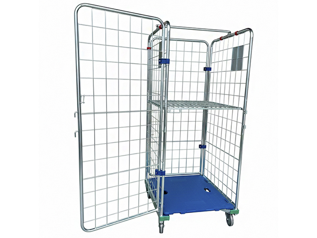 O Carrinho Aramado tipo Roltainer é fabricado em aço carbono zincado ou aço galvanizado a fogo, garantindo longa vida útil e resistência à oxidação. Suas dimensões variam conforme o modelo — padrão de 650 mm de largura, 820 mm de profundidade e 1.700 mm de altura, podendo incluir porta simples, dupla ou superior abatível. Os rodízios de 125 mm de diâmetro proporcionam excelente mobilidade, sendo dois fixos e dois giratórios. O piso pode ser em grade de aço, chapa perfurada ou base plástica, com possibilidade de inclusão de prateleiras e araras.