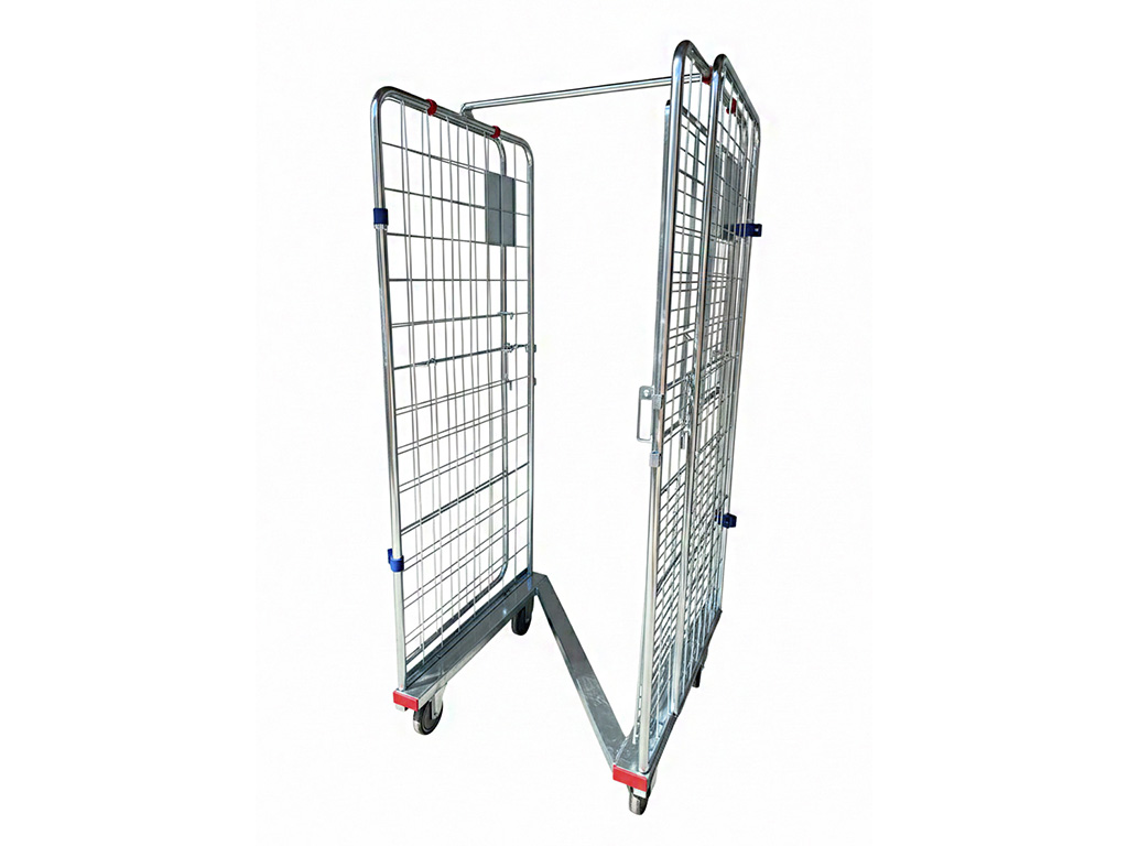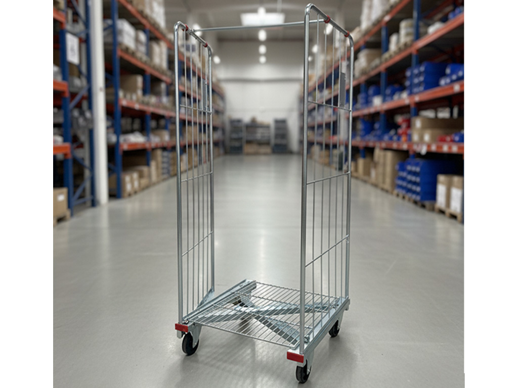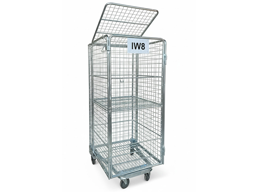 O Carrinho Aramado tipo Roltainer é fabricado em aço carbono zincado ou aço galvanizado a fogo, garantindo longa vida útil e resistência à oxidação. Suas dimensões variam conforme o modelo — padrão de 650 mm de largura, 820 mm de profundidade e 1.700 mm de altura, podendo incluir porta simples, dupla ou superior abatível. Os rodízios de 125 mm de diâmetro proporcionam excelente mobilidade, sendo dois fixos e dois giratórios. O piso pode ser em grade de aço, chapa perfurada ou base plástica, com possibilidade de inclusão de prateleiras e araras.