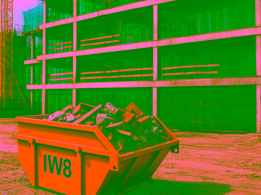 A NR-18 estabelece diretrizes para canteiros de obras, incluindo organização, circulação, armazenamento e gestão de resíduos. A colocação de caçamba estacionária deve considerar acessos, sinalização, estabilidade, rotas de veículos e coleta por poliguindaste. Também recomenda procedimentos para evitar poeira, respingos e riscos ao público. A IW8 projeta dimensões/identificação para facilitar conformidade.