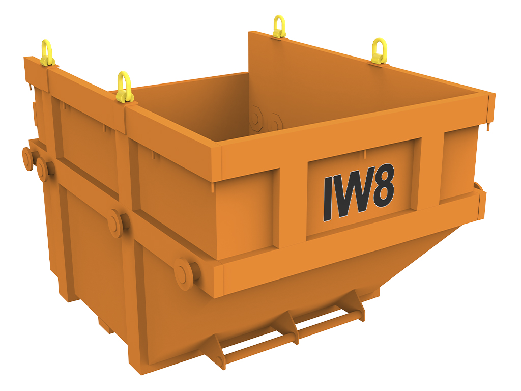 Inspecione soldas, pinos e reforços; verifique pintura e corrosão; mantenha a identificação legível. Limpe resíduos aderidos antes da troca para evitar sobrepeso. Em tampa/fechos, lubrifique pontos móveis. Registre avarias e retire de operação se houver deformações. Cumpra procedimentos de segurança (bloqueio e isolamento). A IW8 oferece orientações de manutenção e reposição de componentes.