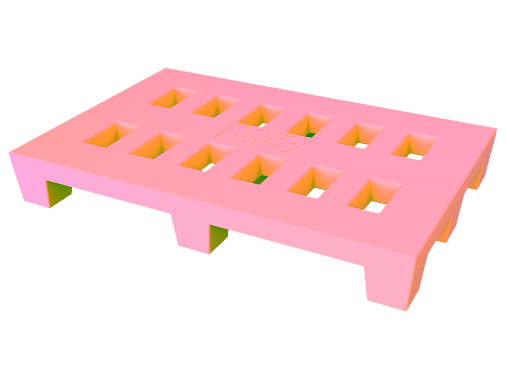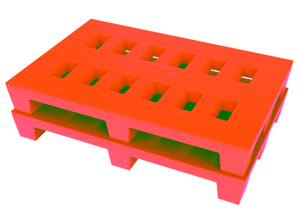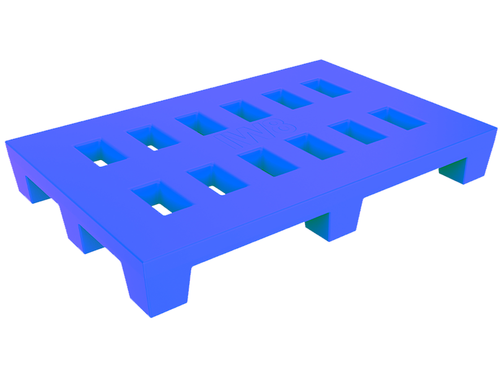 Fabricado em polietileno de média densidade (PEMD), o pallet é produzido pelo processo de rotomoldagem em peça única (monobloco). Suas medidas padrão são 1,20 x 1,00 m, altura de 16,5 cm e peso de 15 kg. A capacidade varia de 500 a 1000 kg, dependendo da versão. Projetado para uso em câmaras frias, indústrias alimentícias e setores farmacêuticos, é leve, empilhável e imune a fungos e bactérias.